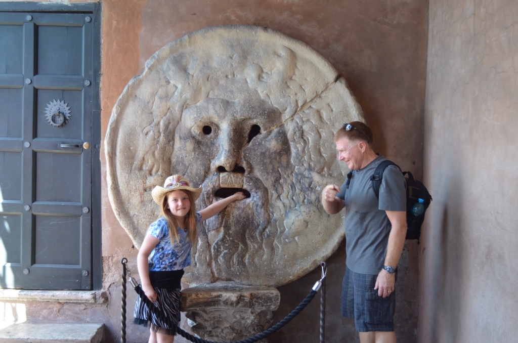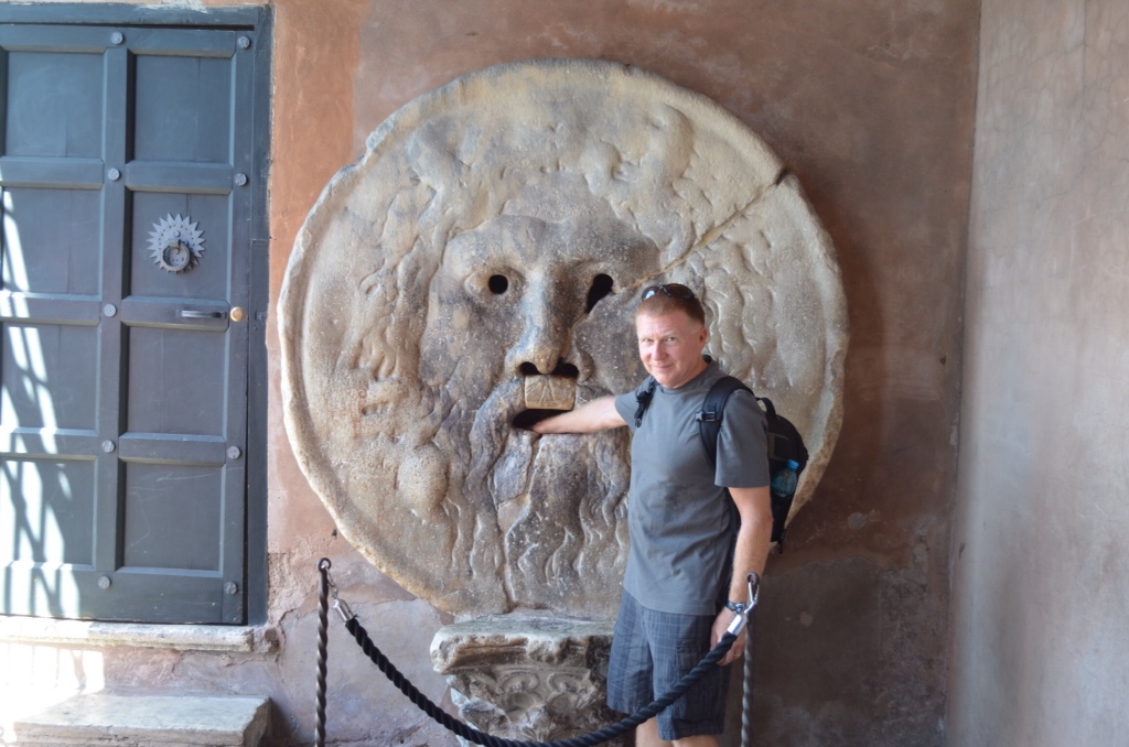 We came back to the apartment, and in true Roman fashion, we had lunch and took a long siesta. It is brutally hot in midday, so it pays to sleep through it all and come back in the late day. We woke up just in time to meet up with Jose for the afternoon walk. We were to start at a place that had captured Genene's imagination since she heard about it, The Mouth of Truth.