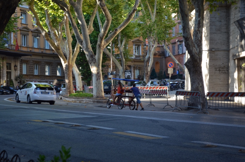 It was another exhausting day in Rome, but at least we avoided some of yesterday's pitfalls. We are finding it easiest to catch a taxi to our meeting place with Jose. There is a cab stand very close to our apartment, and we have always found them ready and waiting. It's a little more expensive than using public transportation, but it's a good way to get exactly where you want to go quickly and without the threat of pickpockets. Traffic is crazy in Rome, but the cab drivers are masters. They seem to make lanes where there are none. They dodge pedestrians, buses, and motorcycles with ease. It's scary as all-get-out for us, but it's all in a day's work for them. Genene is either jaded or ignorant, because she nods off almost every time we get in the cab, while Greg and I hold on for dear life with white knuckles.