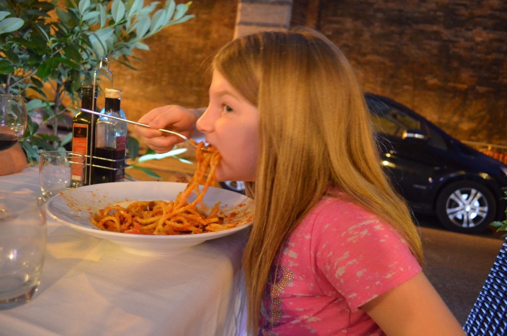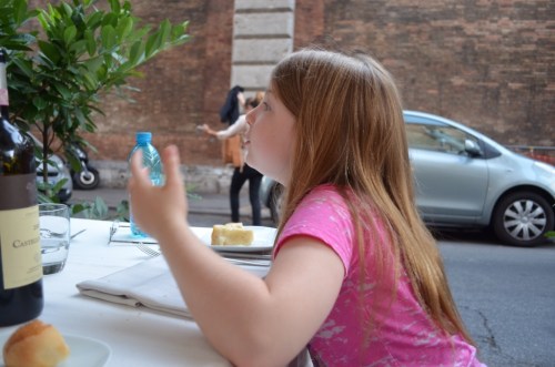 We got ready for the passeggiata and dinner. We passed by our regular gelato shop, and the young man behind the counter called out to Genene, “Ciao, bella!” We loved this young man. He was a dead ringer for Mr. Bean and knew it. He would dish out the gelato while doing his imitation, much to Genene's delight. Sadly, that “Ciao, Bella!” was to be the last thing we said to each other. We had intended to come back for gelato later that evening but stayed too long at dinner and returned to find his shop shuttered. We will have to come back another time. We've all thrown coins in the Trevi Fountain, so we know we will be back someday.