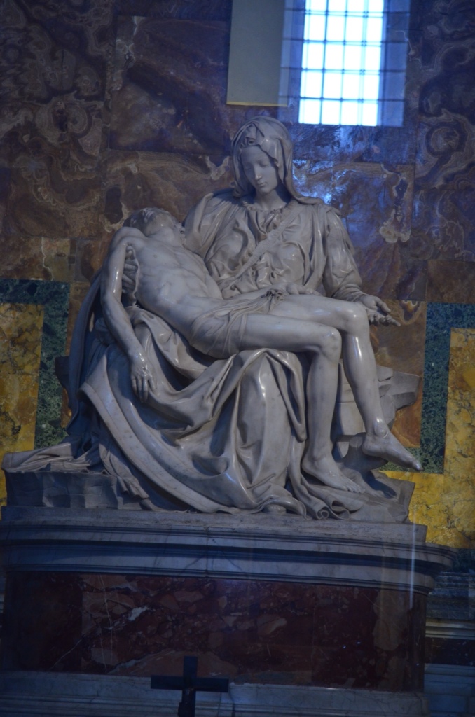 Between packing, I also stared out the window of the terrace. I watched an artist creating an image of Jesus in colored chalk on the plaza in front of the church across the street from us, Sant'Andrea delle Fratte.