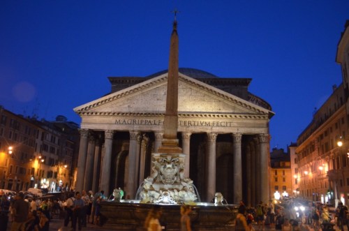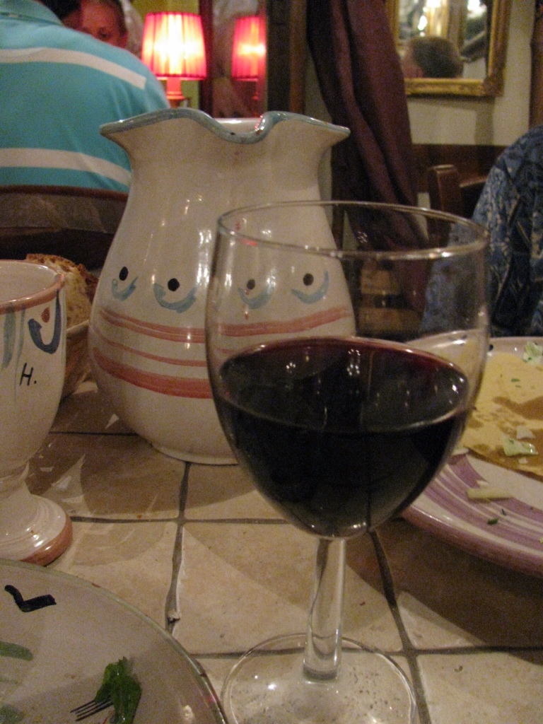 We strolled to Pietro al Pantheon for our last dinner out. Of all the restaurants we had been, we liked this one best. It was quaint, two tables wide, with real Italian charm and house red wine by the liter, served cool in a pitcher.