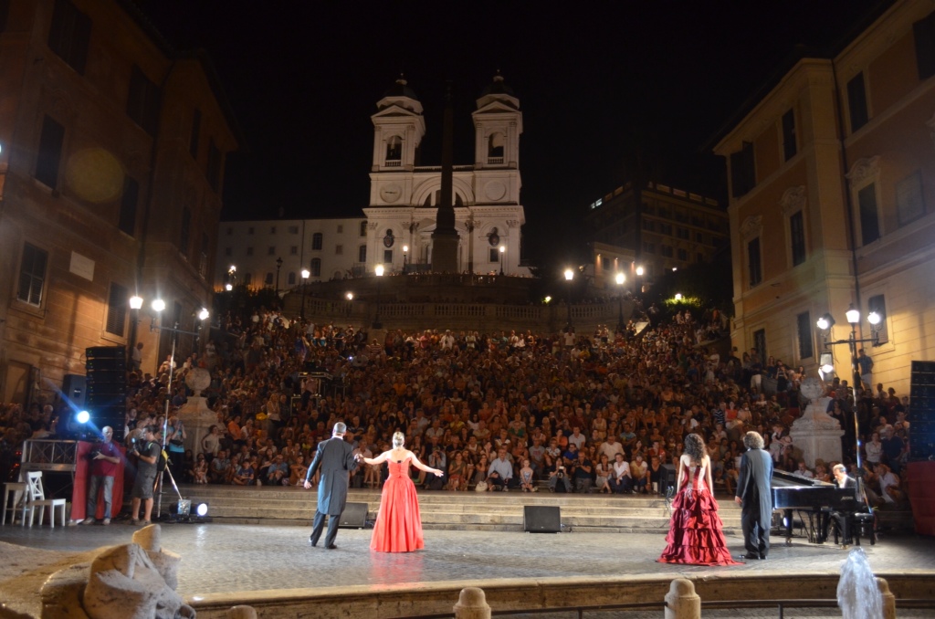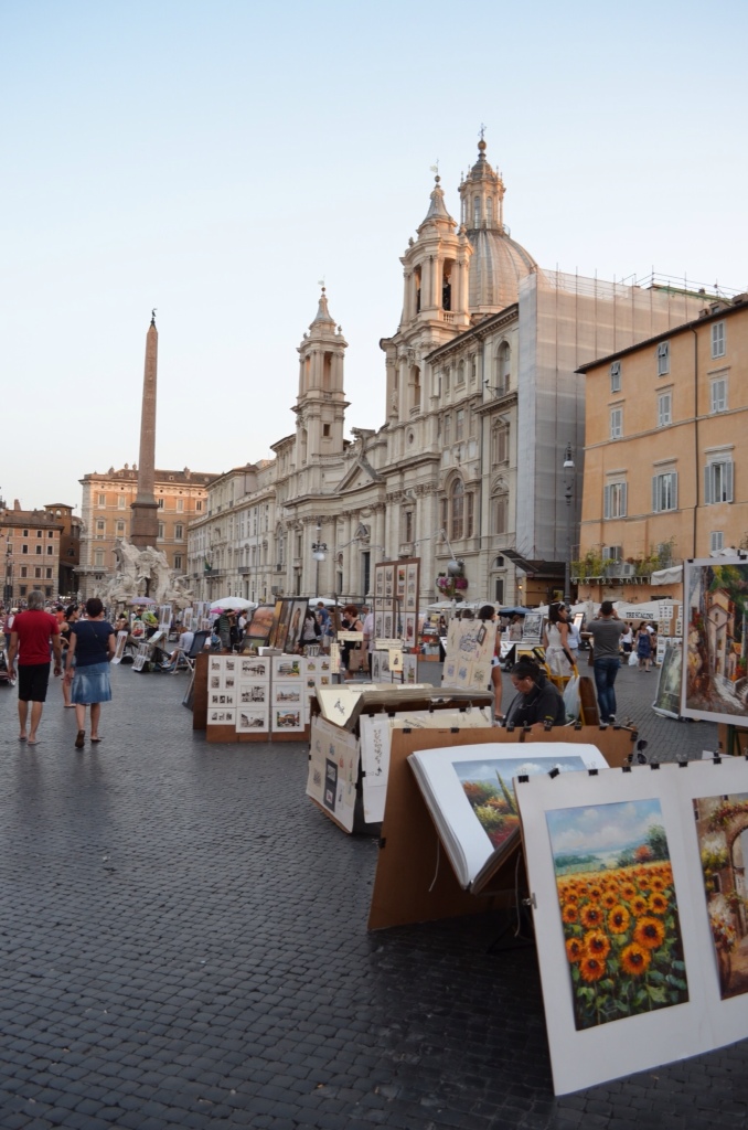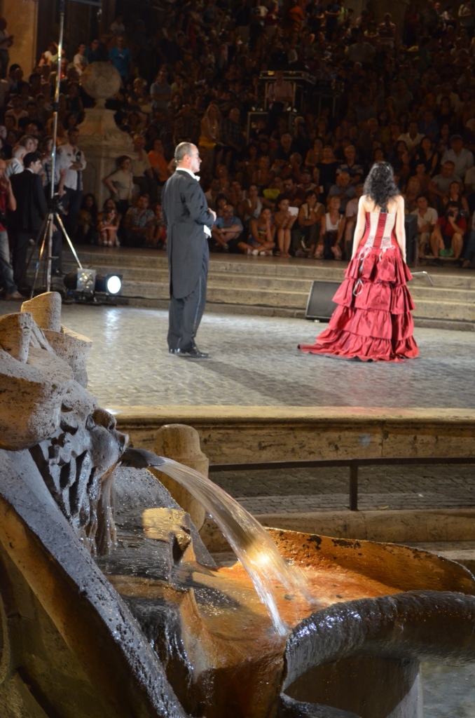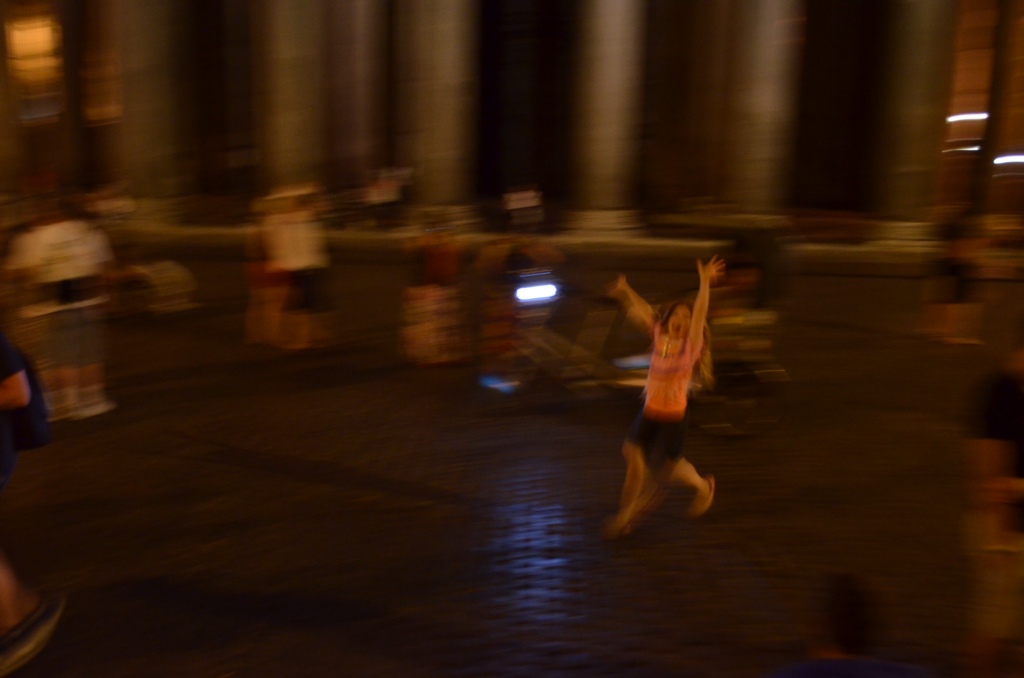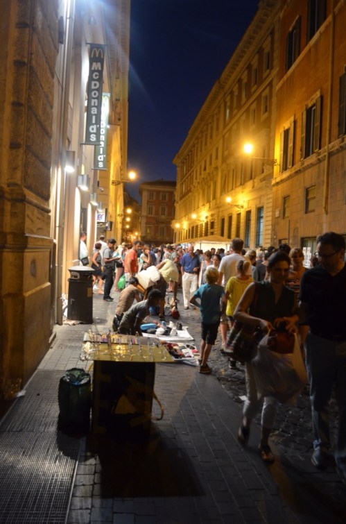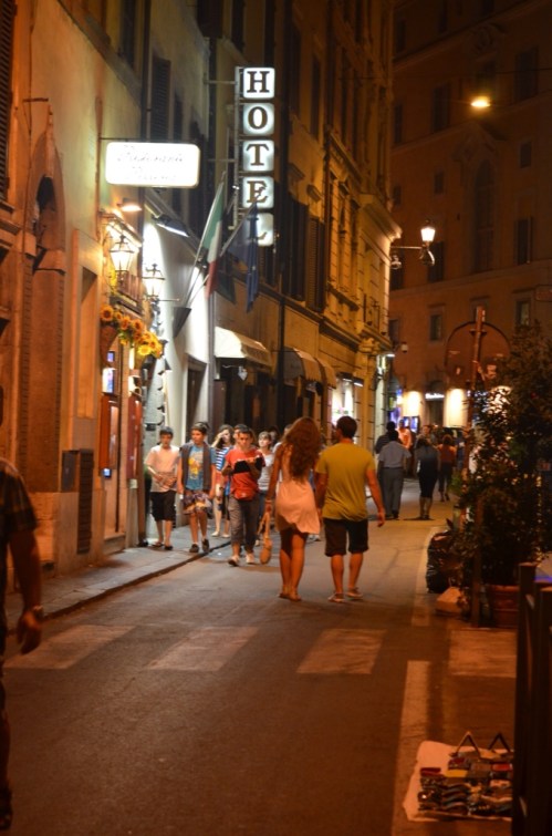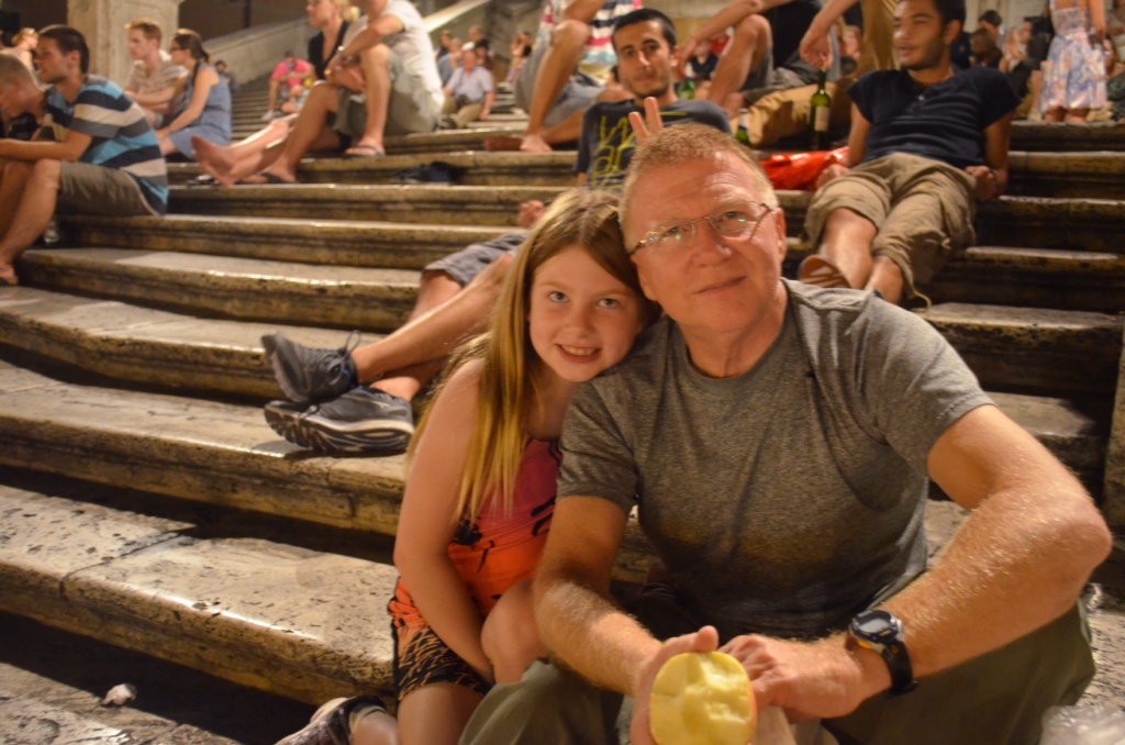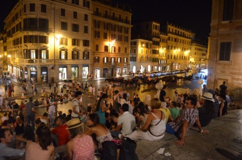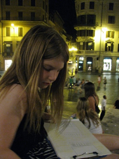 Of course, we headed down to the Spanish Steps. We found a gelato shop there that was still open and sat down to eat the cold, creamy dessert on the steps. It seemed that most of the people on the steps were young Americans. What fun it would be to be young and in Rome for the summer! Even the pesky street vendors had slowed down some. We only got a couple of offers to buy things, and no one tried to force a flower into my hand. It was nice.
