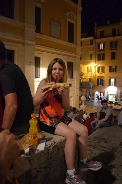 We strolled back by the Trevi Fountain one last time. All of us had taken turns throwing coins into the fountain (more than once) so there was no need to do more than blow it a kiss, watch the crowds for a minute and keep walking.