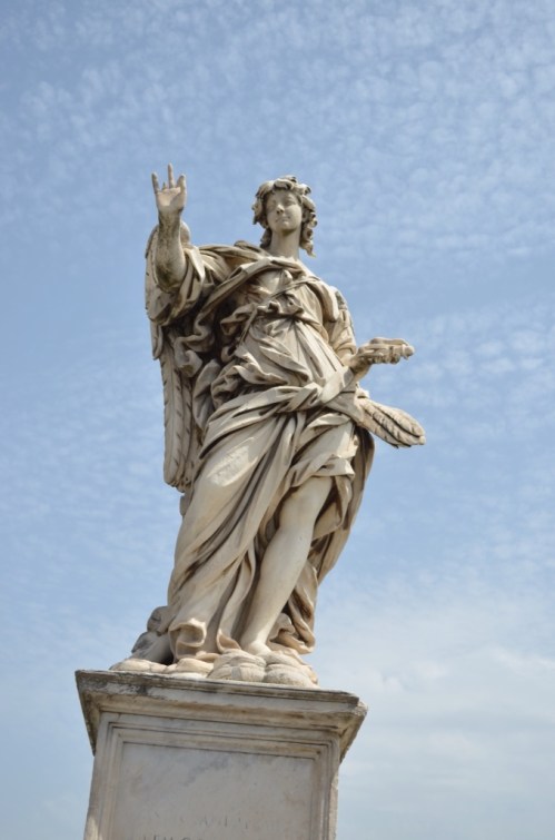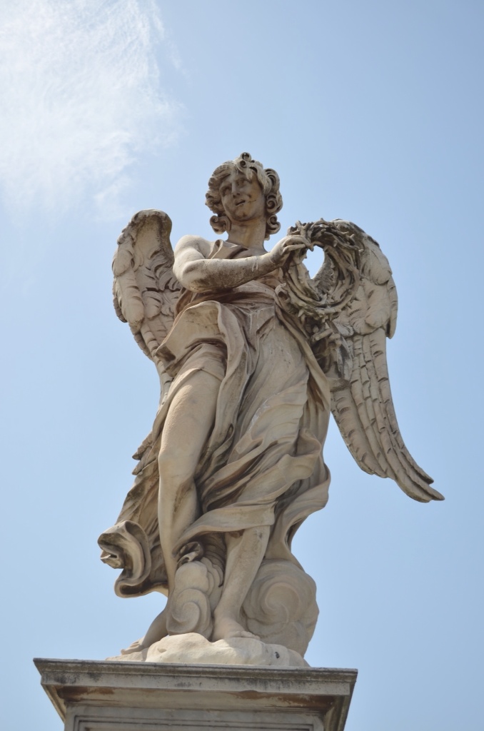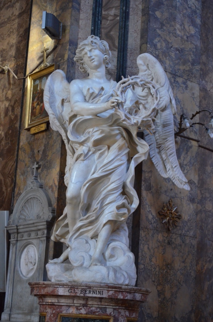 I went back out to finish the souvenir shopping and to satisfy a curiousity. After going to Castel Sant'Angelo and the bridge, I did some reading about it on the magic internet (thanks, Al Gore). I read that Bernini's “Angel with the Crown of Thorns” on the Ponte Sant'Angelo bridge was actually a copy. It is one of the most artistically significant of the angels, as it is said to be the artist's self-portrait. The internet said that the original was in Sant'Andrea delle Fratte!!! This is the church right across the street from our apartment. I mentioned this to Jose, but he did not know about it and said I should go check it out. He advised me to just stroll into the church like “you know what you are doing.” I did. The Bernini was under our noses all along!!