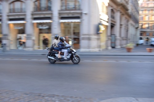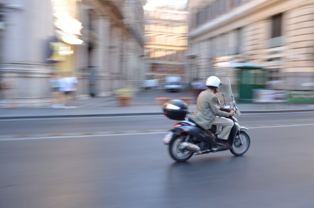 I got up very early and made a last run down to the ATM. I had it in my mind to do some panning shots with the camera on the way back. I had a vision of seeing Gregory Peck on a green, white and red Vespa (never mind the small detail that he is dead) and stopping him while keeping the background blurry, creating that feeling of movement. Well, let me tell you that the Vespas don't come by on cue, and even when you do fnd a scooter rider, they think you are weird when they see you panning them with your camera.