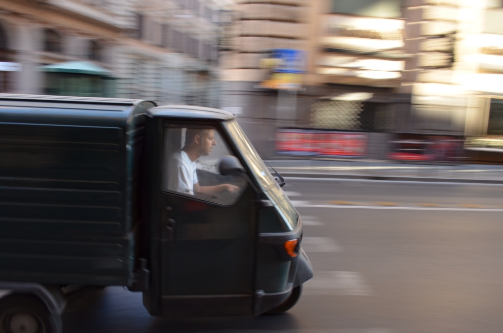 These three are the best panning shots I could do. I will keep practicing! I like the guy in his little green three wheeled truck best.