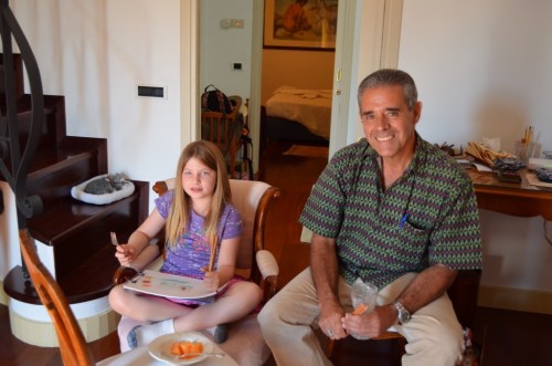 Jose came to give Genene a sketching lesson early in the morning. He brought her a gift of a beautiful set of coloring pencils, some quality paper, and a clipboard. He explained to her how important it was to use good paper. Good pencils like good paper. Their lesson gave Greg and me the perfect opportunity to get our things packed. Genene and Jose spent the first hour in the living room, making a sketch from an oil painting on the wall. I heard Jose telling her several times, “And now I'm going to show you a little secret.” They spent the second hour on the rooftop terrace, sketching a church dome. Genene soaked it up like sponge.