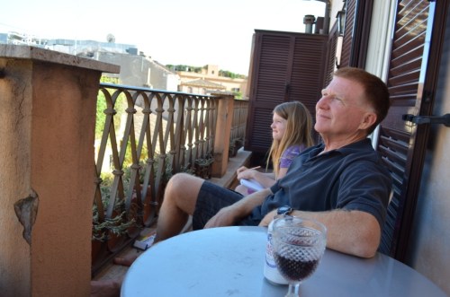 Exhiliarated by “finding” a Bernini original right in the hood, I came back out into the sunlight and finished my stroll. I found Greg and Genene awake when I returned. We sat on the terrace for a while, and Genene sketched the bell tower of Sant'Andrea while Greg had a beer and I drank a glass of wine. She was so proud of her work that she made me take a photo of it and email it to Jose, who immediately responded and told her that he would cherish the photo. How sweet!