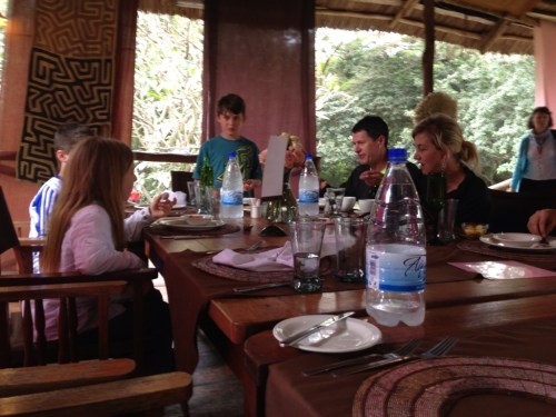 We took a group photo of the guides and families. From left to right they are Head Guide Hasheem, Lori, Genene, Greg, Scott, Ariel, Jordan, Mentor Tom, Jocelyn, Lindsay, Support Guide Simon, Connor, Sheryl, Jim, and Support Guide Harrison.