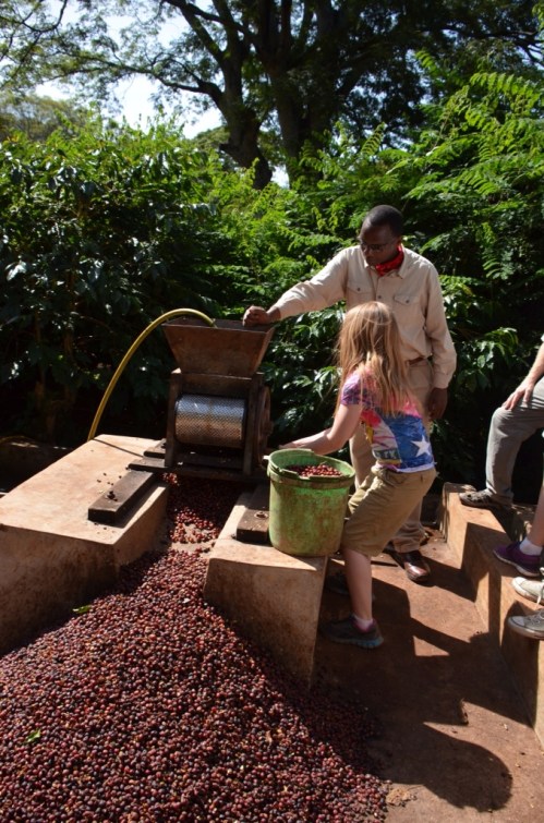 We had our last lunch together as a group in Arusha at River House: we had delicious ginger and carrot soup, green beans, carrot salad, potato salad, chicken, fish and beef on the grill, African barbecue style. They also served a fried zucchini blossom that was delicate and delicious. For dessert we had chopped fruit and chocolate-covered coffee beans.