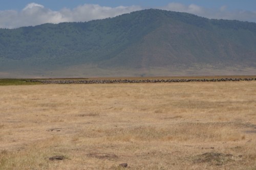 We boarded the plane, bumped our way across the field and took flight. En route to Arusha, our pilot flew us over an active volcano. Ol Doinyo Lengai, or Mountain of God in the Maasai language, rises out of the Lake Natron area near Arusha. This volcano is unique among active volcanoes: whereas most lavas are rich in silicate minerals, the lava of Ol Doinyo Lengai is a carbonatite. It is rich in rare sodium and potassium carbonates. Due to this unusual composition, the lava erupts at relatively low temperatures. The temperature is so low that the molten lava appears black in sunlight, rather than having the red glow common to most lavas. The minerals of the lavas formed by Ol Doinyo Lengai are unstable at the Earth’s surface and susceptible to rapid weathering, quickly turning from black to grey in color. The resulting volcanic landscape is different from any other in the world…. or so says Wikipedia.