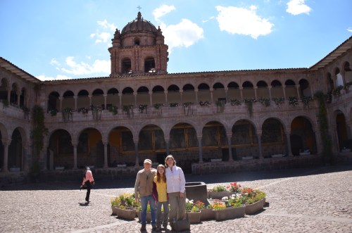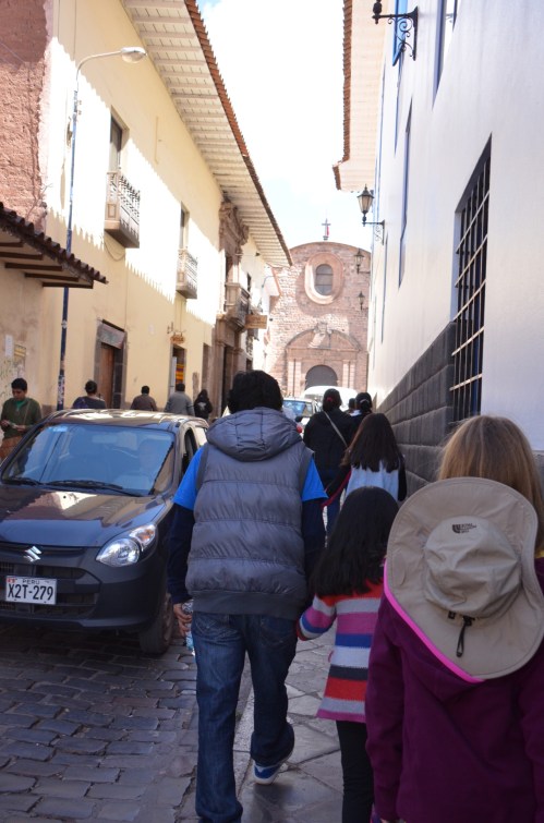 Our next stop was to be Qurikancha, Temple of the Sun. Carlos turned into a “garaje” to park the car. From the street, a man opened narrow gates, and we pulled into a parking lot of sorts. There were sheds, and the cars were all double parked. Carlos pulled his car into the inside spot, and someone immediately double parked behind him. They discussed how long each of them would be gone, traded cell phone telephone numbers and we were off.