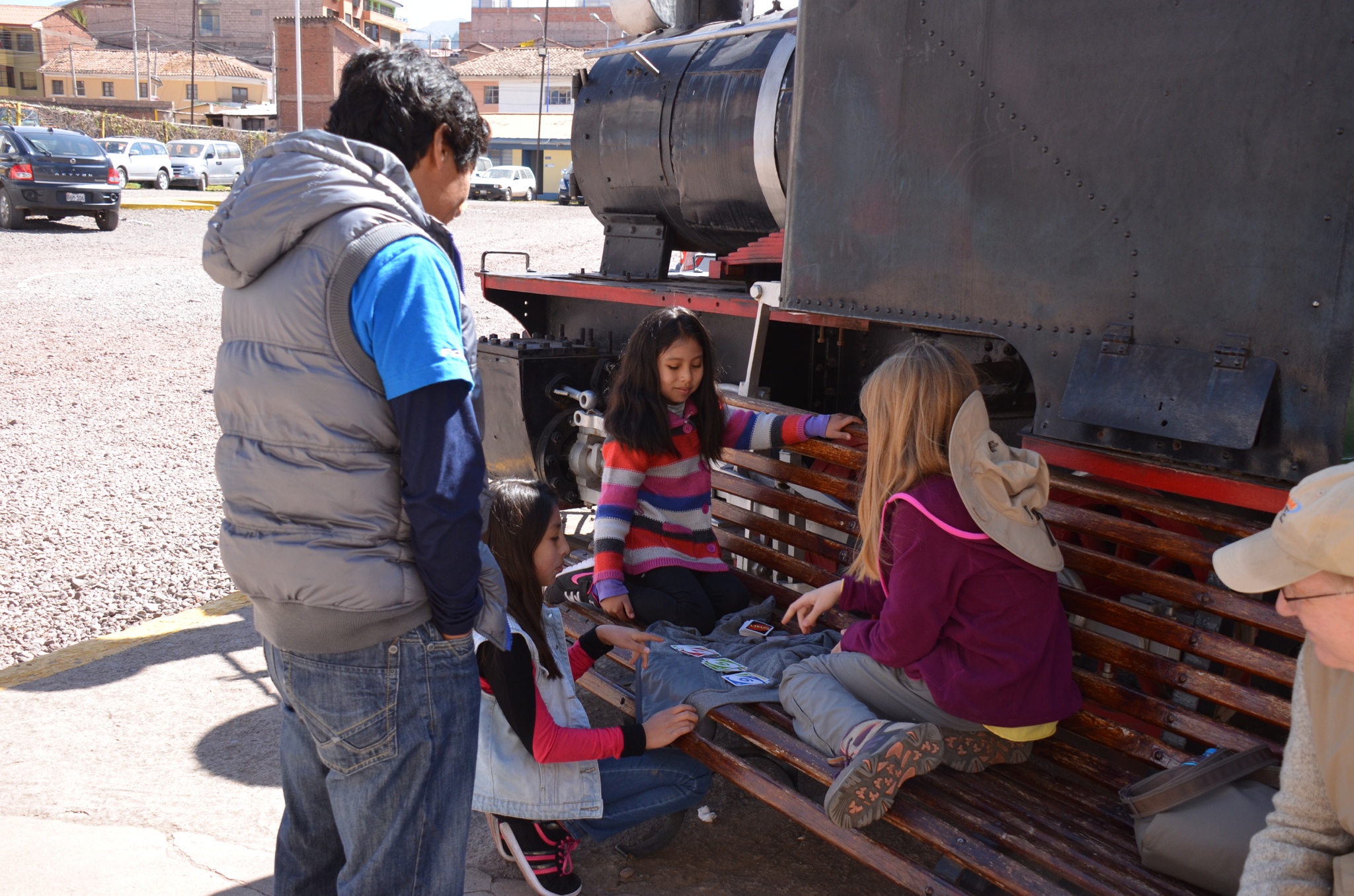 Carlos and the girls said their goodbyes and went to get their car. I hope that the double parker was gone. Elizabeth escorted us back to the Plaza de Armas so that we could get our bearings and walk back to the hotel. It was a lovely family day. We got to experience something very real. We talked to Carlos and Elizabeth about how they met, where they worked, where the girls went to school….we learned about their lives. Genene got to play card games with girls her age on the streets of Cusco. For a moment, we were not just tourists. We were two families, sharing a day. It was a wonderful bonding moment that I will cherish, and it’s something we would have missed on the Inca Trail. Carlos did not have to give us his free day with his girls to squire us around the streets, and I told him so. He said simply, “There is a saying here, and you must understand this. Mi casa es su casa.” Of course, I have heard that saying many times in my life, but it has never held as much meaning as it did for me on this special day.