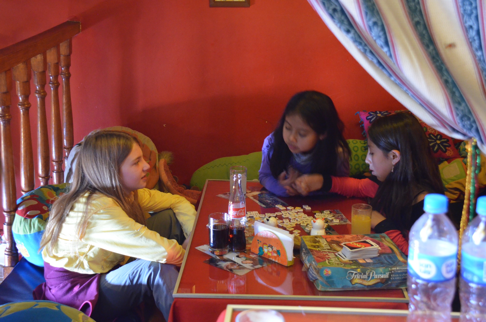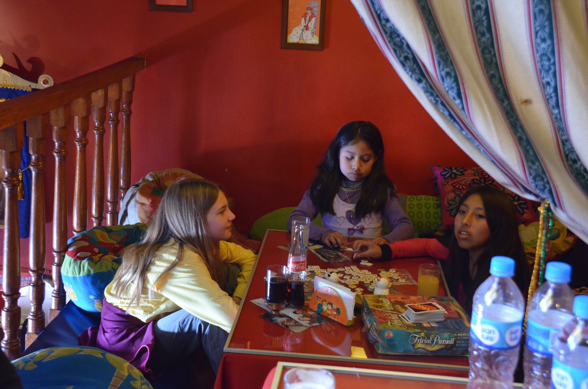 Carlos and Elizabeth showed us to an upstairs restaurant we would have never found, and we had a great little three course meal. The girls sat at a separate table and played Uno, Concentration, and Scrabble. We asked them how they were playing Scrabble and in what language. They were using English and Spanish. Greg joked that it gave them all a good opportunity to cheat.