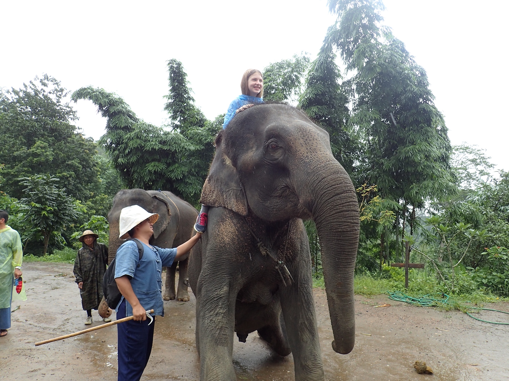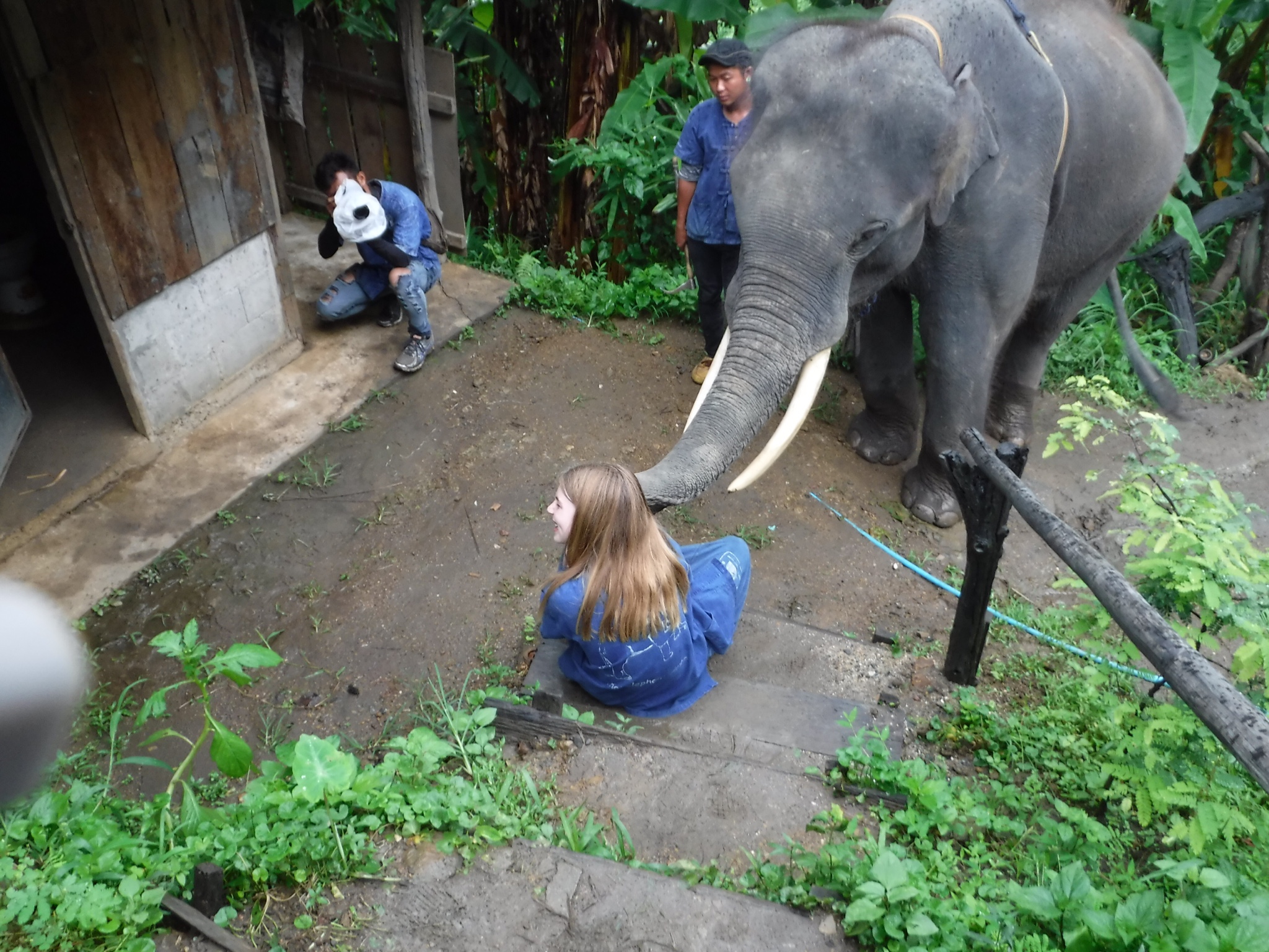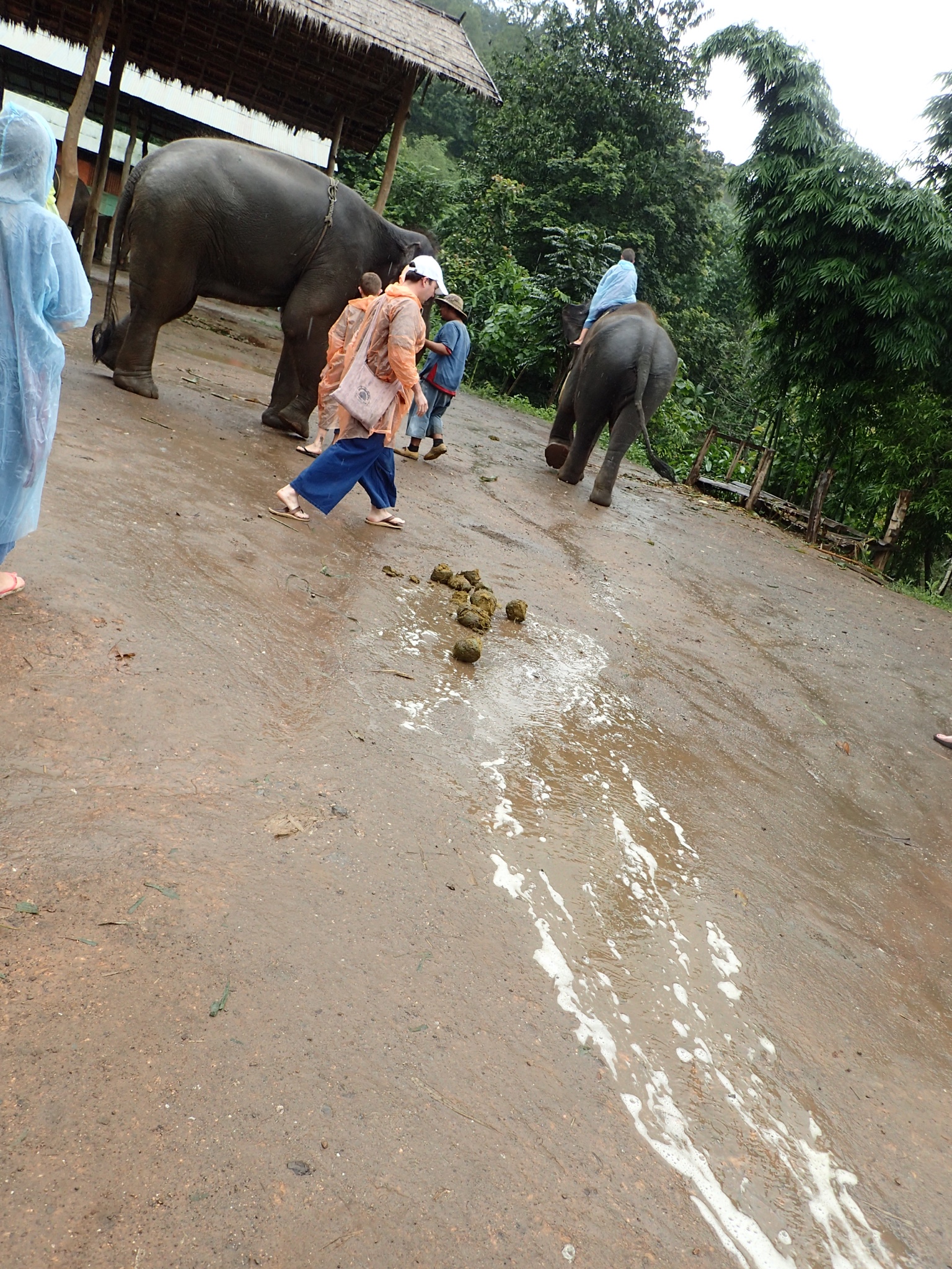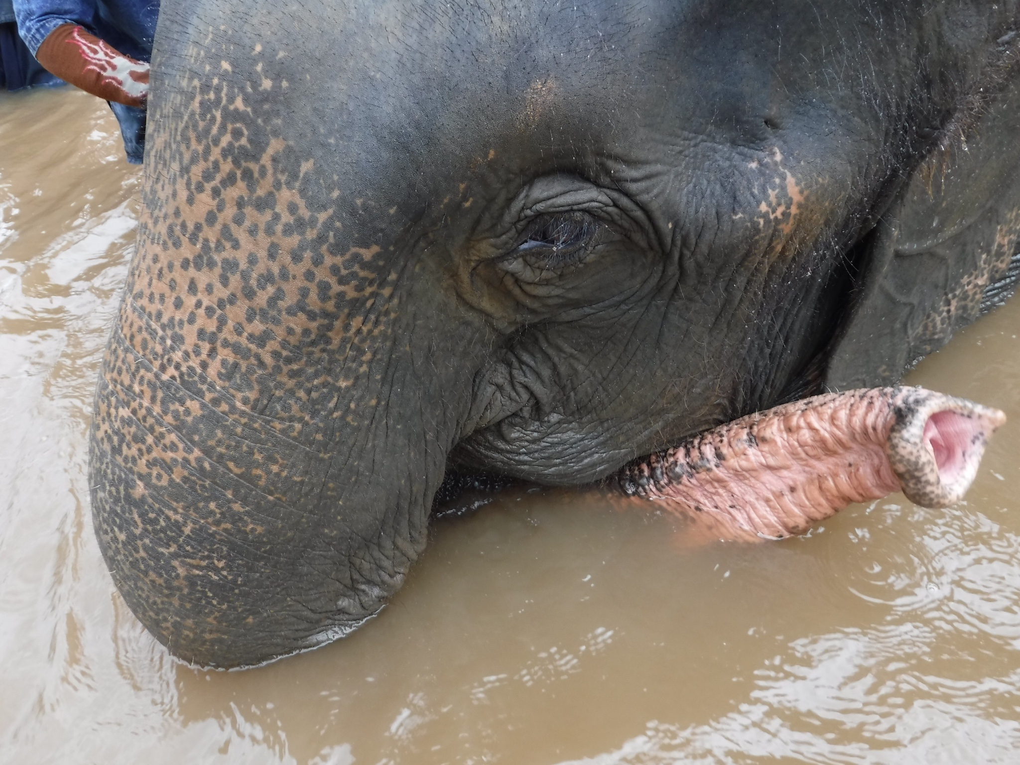 The mahouts said, “Map long” right in the middle of the river, and our elephants went down and we all got soaking wet.