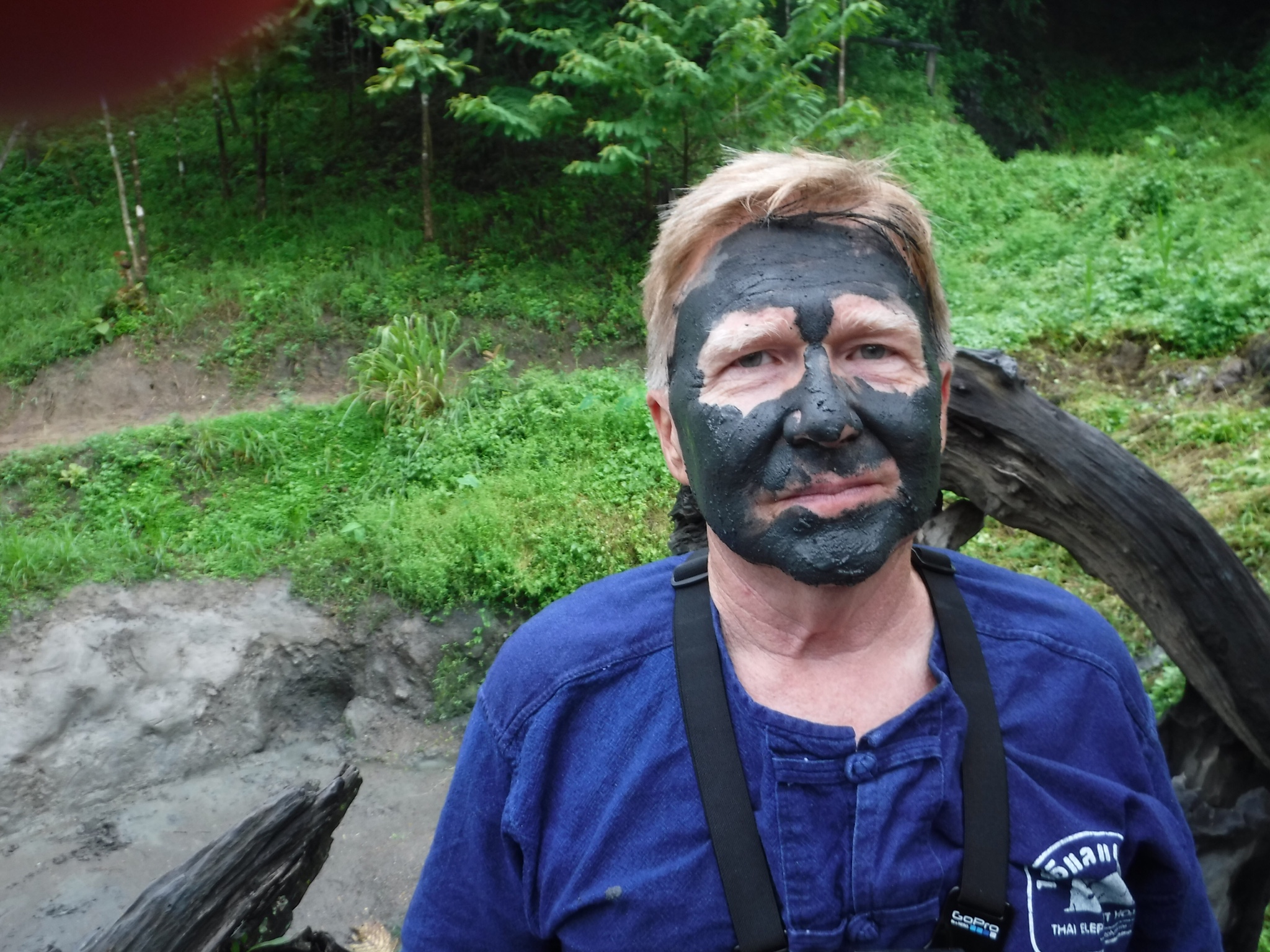 We climbed back aboard and kept riding through the jungle, our faces still black with mud.