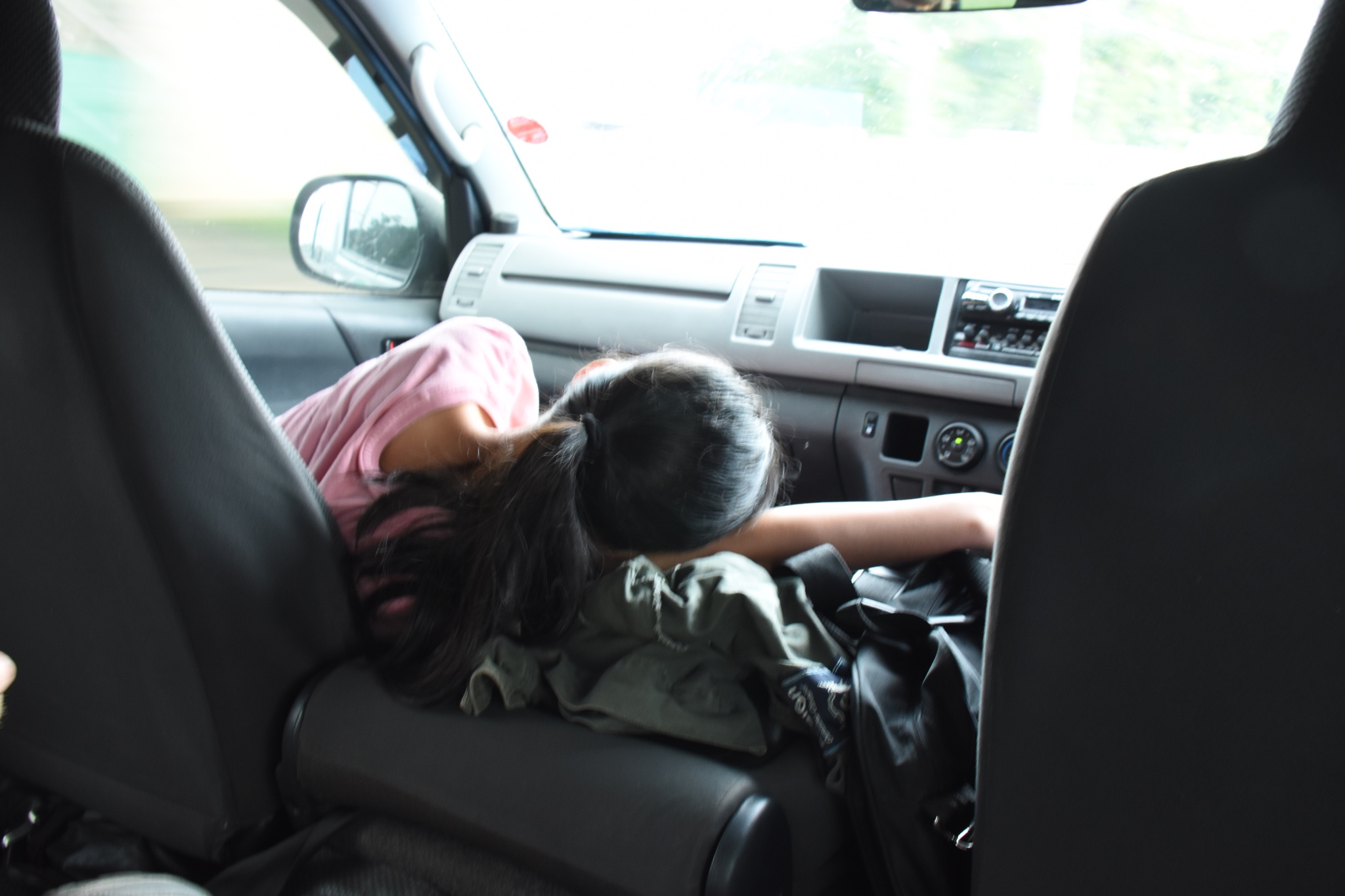 Our driver brought his daughter along. She might be a little older than Genene. It looks like she enjoys sleeping in the car too.